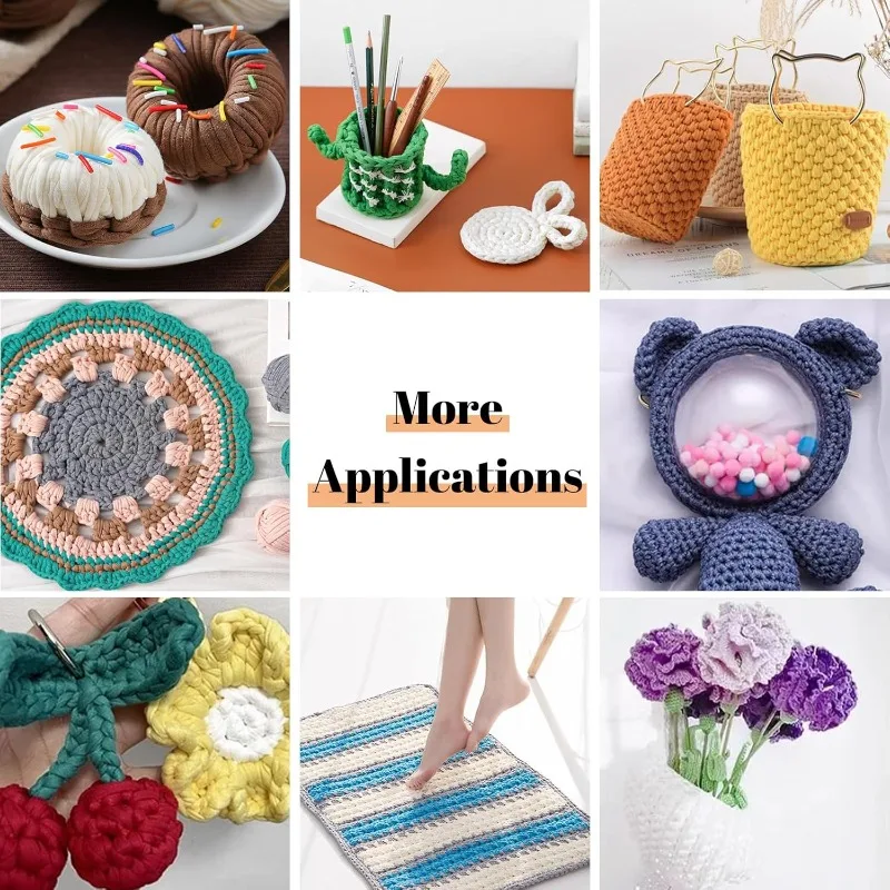 خيط كروشيه سميك متين ومرن لتصنيع الحقائب والمفارش، مصنوع من بوليستر عالي الجودة، يسهل تشكيل المشاريع الكبيرة مع نتائج متينة واحترافية.